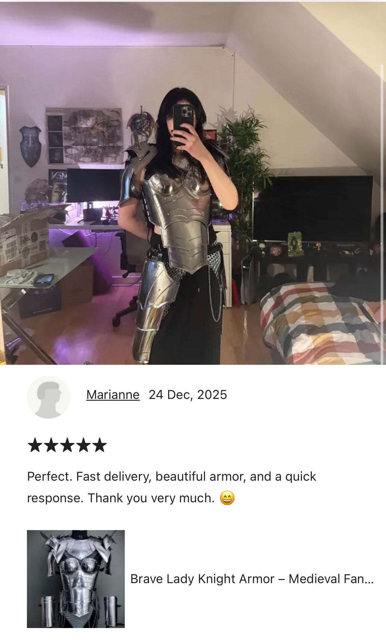 Once completed, your armor is carefully packed with protective materials to prevent damage during transit and shipped worldwide through reliable courier partners.