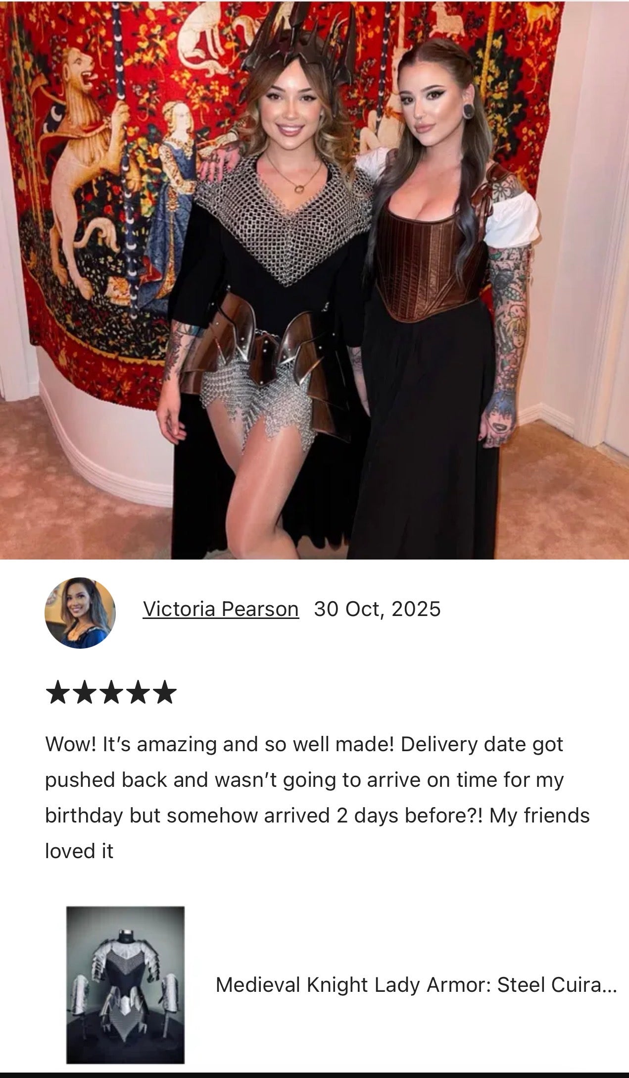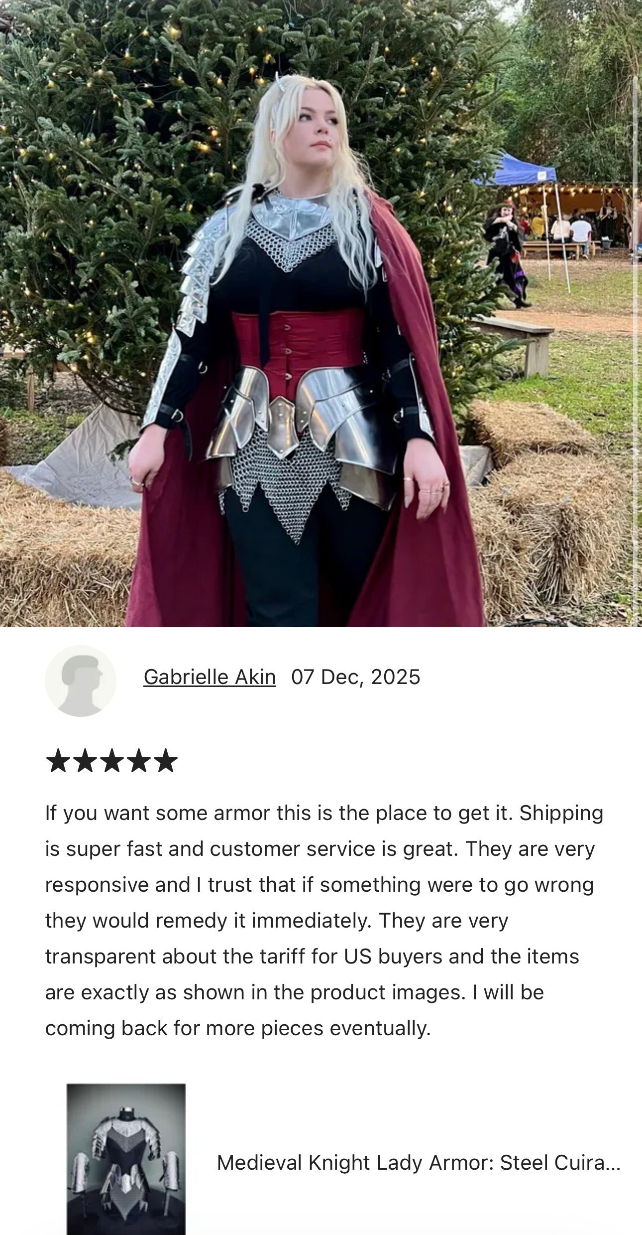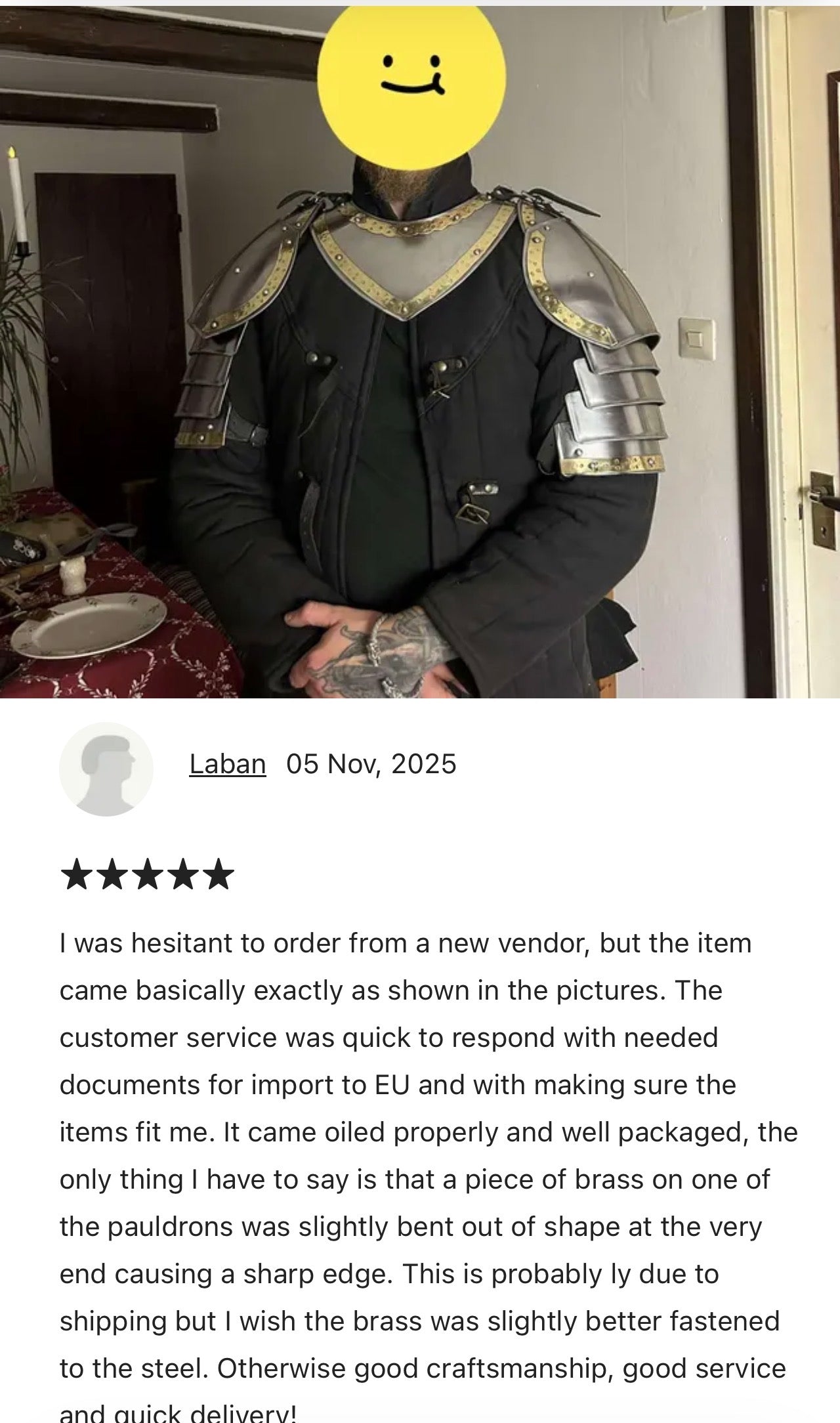 Each piece is handcrafted by experienced armorers in our workshop, not mass-produced overseas.